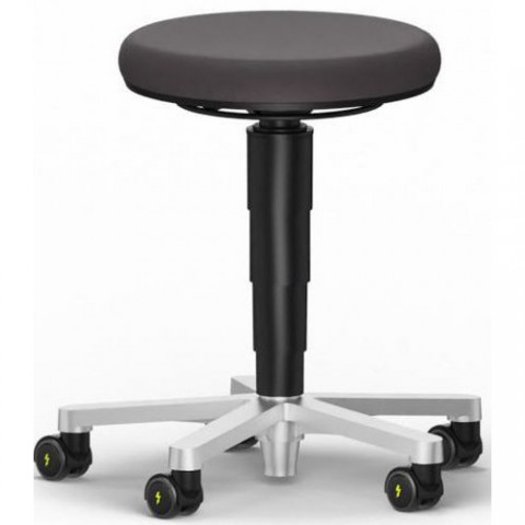 ESD stolička s maximální bezpečností díky komplexní ochraně součástí dle normy DIN EN 61340-5-1. Systém stoličky s antistatickým výbojem (ESD) umožňuje bezpečné vybití před nahromaděním nadměrného napětí. Všechny součásti stoličky jsou navrženy tak, aby byly vodivé. Plynulé nastavení výšky sedáku od 450 až 650 mm pneumatickým systémem. Ideální pro krátkodobé sezení s rizikem výboje.Antistatická ESD stolička BIMOS, nízká s kolečky