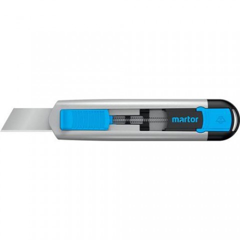 Robustní bezpečnostní nůž Secunorm 540 s ergonomickou hliníkovou rukojetí a poloautomatickým zatahováním. Hloubka řezu 36 mm je vhodná zejména pro řezání silných materiálů. Vhodné pro praváky i leváky. Jednoduchá výměna čepele bez použití nářadí.Bezpečnostní nůž Martor Secunorm 540