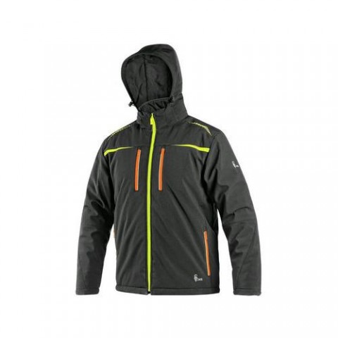 Pánská zateplená softshellová bunda s odepínací kapucí, odolná proti vodě a větru, zapínaní na zip, větrání v podpaží, náprsní kapsy na zip, v pravé kapse odnímatelné pouzdro na ID kartu, boční kapsy na zip, vnitřní kapsy, vnitřní manžety v rukávech, stahování v dolním okraji, reflexní doplňky, TPU membrána, vnitřní otvor na zip pro aplikaci výšivky. Odolnost materiálu proti průniku vody 8 000 mm mimo oblast švů, paropropustnost 3 000 g/m2/24h. Velikost: 2XL-XL Sezóna: Zimní Voděodolnost: 8 000 mm Paropropustnost: 3 000 g/m2/24hod Zateplení: 100 % polyester Reflexní doplňky: AnoBunda CXS NORFOLK, zimní, pánská, černá s HV žluto/oranžovými doplňky