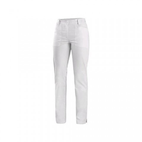 Dámské kalhoty, pas částečně elastický s poutky na opasek, 2 přední našité kapsy, zadní lištová kapsa, dole boční rozparek. Doporučené použití: soukromé ordinace, kliniky a velká zdravotnická zařízení, záchranné a zdravotní dopravní služby, lázeňská Velikost: 36-60 Svrchní materiál: 64 % polyester 33 % bavlna 3 % elastan (Spandex) Barevnost: BíláDámské kalhoty CXS ERIN bílé
