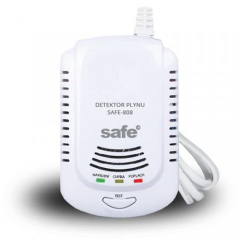 Detektor hořlavých a výbušných plynů (zemní plyn, metan, propan, butan) s technologií polovodičového senzoru, který nevyžaduje další kalibrace. Hlásič plynu SAFE - 808 se ideálně hodí pro detekci úniku plynu ze všech domácích plynových spotřebičů a plynových kotlů. Detekuje všechny hořlavé plyny běžně se vyskytující v domácnostech. Akustické varování - siréna o hlasitosti 85dB informuje o zjištěném nebezpečí. Informační a výstražná LED indikace. Funkce test - ověřování správného fungování zařízení. Zařízení je napájeno ze sítě 230V / AC se záložní NiMH baterie 9V pro případ výpadku proudu v elektrické síti (baterie není součástí balení). Hlásiče hořlavých a výbušných plynů instalujeme do místností s potenciálním únikem plynu (plynové kotelny, kuchyně, místnosti s wavkami, karmou, přímotopy, teplomety atd.). Tento detektor hořlavých plynů má certifikát potvrzující shodu s požadavky české technické normy ČSN-EN 50194-1:2009. Nízké náklady na provoz, malé rozměry a hmotnost. Citlivost senDetektor hořlavých a výbušných plynů SAFE 808, hlásič zemního plynu