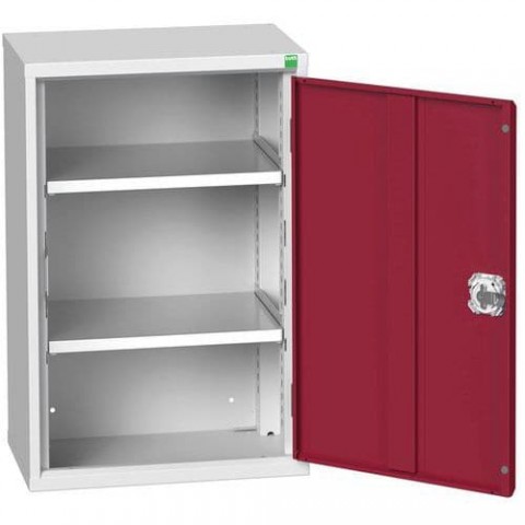 Kovové dílenské skříně s policemi pro efektivní využití v provozech a dílnách. Pozinkované police výškově nastavitelné v rastru 25 mm. Zásuvky uloženy na válečkových ložiskách se 100% výsuvem. Svařovaná ocelová konstrukce, povrchová úprava práškovým lakem. Vyztužené křídlové dveře s tříbodovým cylindrickým rozvorovým zámkem se dvěma klíči.Dílenské skříně policové jednodvéřové Bott Verso, výška 80 cm