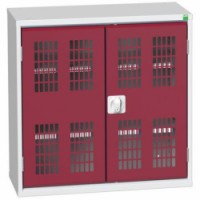 Kovové dílenské skříně s drátěnými dveřmi pro dobrou ventilaci i přehlednost obsahu. Pozinkované police s nosností 75 kg jsou výškově nastavitelné v rastru 25 mm. Svařovaná ocelová konstrukce, povrchová úprava práškovým lakem. Zamykání tříbodovým cylindrickým rozvorovým zámkem.Dílenské skříně policové s drátěnými dveřmi Bott Verso, výška 80 cm