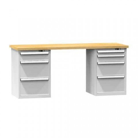 Pracovní stoly KOMBI jsou nejžádanější sestavy stolů kombinovaných ze stavebnicových nábytkových dílů. Pracovní stoly nabízíme v předdefinovaních sestavách pro každý typ v několika šířkách i hloubkách. KOMBI stoly se sestavují z pracovní desky, nohy pracovního stolu (nabízíme několik variant) nebo zásuvkové skříně, které mohou být na obou stranách stolu. Nohy je možné opatřit kolečky nebo elektro vybavením. Pracovní prostor mnohonásobně rozšíříte díky nástavbě pracovního stolu a širokému příslušenství.Dílenské stoly KOMBI NM4825, 2500 x 800 x 880 mm, MULTIPLEX