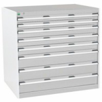 Zásuvkové skříně Bott Cubio se zásuvkami s nosností 75 kg a 100% výsuvy na válečkových ložiskách. Robustní svařovaná ocelová konstrukce s nosností až 1,5 tuny, povrchová úprava práškovým lakem. Systém centrálního zámku i blokace otevření více zásuvek najednou. Ergonomické rukojeti s popisovatelnou lištou, uzamykání cylindrickým zámkem se dvěma klíči.Dílenské zásuvkové skříně Bott Cubio, 100 x 105 x 65-75 cm, 8 zásuvek