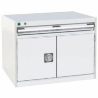Zásuvkové skříně Bott Cubio se zásuvkami s nosností 75 kg a 100% výsuvy na válečkových ložiskách. Dvířka skříňky s perforovanou vnitřní stranou pro uložení nářadí. Robustní svařovaná ocelová konstrukce s nosností až 1,5 tuny, povrchová úprava práškovým lakem. Systém centrálního zámku i blokace otevření více zásuvek najednou. Ergonomické rukojeti s popisovatelnou lištou, uzamykání cylindrickým zámkem se dvěma klíči.Dílenské zásuvkové skříně Bott Cubio, 60 x 80 x 52,5-75 cm, 1 zásuvka, 1 skříňka
