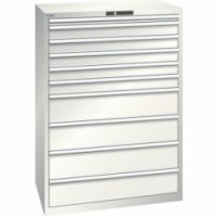 Dílenské skříně s plně výsuvnými zásuvkami. Ochrana proti prachu, kapalinám díky uzavřenému rámu s povrchem odolným proti nárazům a oděru. Bezpečnostní pojistka zabraňující pádu a individuálnímu zamykaní zásuvek (ochrana proti převrácení). Ochrana proti korozi pomocí elektroforetického imerzního lakování a stříkání. Profesionální označování pomocí softwaru pro označování LISTA Script a výklopné úchytky pro vkládání štítků. Dokonale tichý pohyb díky saně bez příčníku.Dílenské zásuvkové skříňe Lista, 1023x725x1450 mm, 10 zásuvek