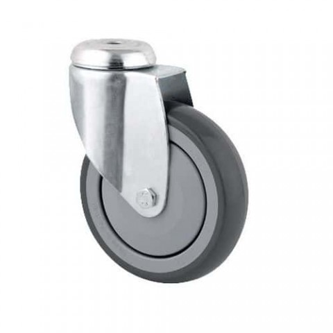 Na těchto otočných kolečkách můžete snadno přemisťovat své vybavení. Pneumatika z termoplastické pryže nepoškrábe podlahu. Pozinkovaný ocelový rám.Gumová transportní kola se středovým otvorem Tente, průměr 50 - 125 mm, otočná, kuličková ložiska