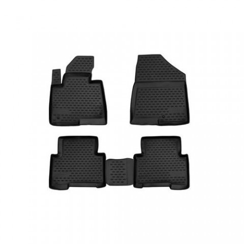 Koberce jsou vyrobeny přesně podle tvaru podlahových ploch konkrétního typu vozidla. Odpadá tak složité porovnávání mnohdy nepřesných univerzálních koberců a nutnost problematického zastřihávání do požadovaného tvaru. Koberce jsou snadno omyvatelné, s rychlou možností vysypání nečistot a snadnou instalací. Vysoce odolná pryž zajišťuje kobercům vysokou pružnost, která zabezpečí při ohýbání (např. při skladování), že se koberce roztáhnou opět do původního tvaru. Výhodou těchto koberců je zvýšený okraj, chránící interiér interiéru vozidla před vysypáním sypkých materiálů (písek, hlína) či vylitím tekutin (voda), nečistot, prachu, sněhu apod. do interiéru vozidla, s odolností vůči prosáknutí olejů, benzínu a částečně také vůči elektrolytu z akumulátorů. Nepříjemnému posunu koberců po podlaze vozidla či shrnování pod pedály účinně zamezí speciální protiskluzové tvarování na spodní straně koberců, které se snadno přichytí k originálnímu čalounění podlahových prostorů. Koberce jsou snadno omyGumové koberce Hyundai Santa Fe, 2012- SIXTOL