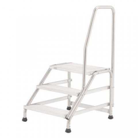 Štafle s hliníkovým zábradlím jsou k dispozici se 3 až 5 schůdky pro dosažení pracovní výšky až 3 metry. Protiskluzové žebrované stupně o rozměrech 560 x 200 mm a plošina 560 x 400 mm. Schůdky slouží jako přístupový produkt, nikoli jako pracovní stanice. Bezpečnostní protiskluzové patky.Hliníkové schůdky s madlem Modul Tubesca-Comabi