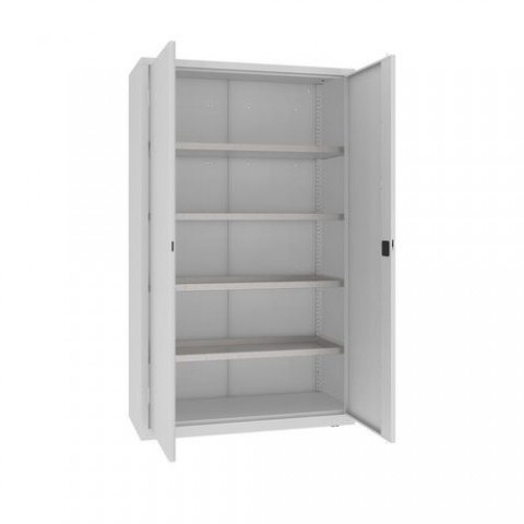 Kovové svařované skříně s vanovými policemi vhodné pro skladování kapalin. Monolitická svařovaná konstrukce z oceli tl. 1 mm zajišťuje vysokou pevnost. Vhodné pro profesionální použití ve vnitřních suchých a větraných prostorách. 4 retenční pozinkované police s nosností 60 kg. Křídlové dveře s tříbodovým zámkem RONIS (dodáváno se 2 klíči). Vyrovnávací nožky, které jsou nastavitelné zevnitř. Posuvníky pro snadný pohyb skříně a ochranu podlahy. Pro vysokou bezpečnost lze přikotvit ke zdi. Před lakováním jsou skříně potaženy zirkoniovou vrstvou, která je chrání před korozí a zvyšuje přilnavost laku. Skříně jsou opatřené nátěrem, který má klasifikaci reakce na oheň: A2-s1, d0 dle norem PN-EN 13501-1:2019-02. Vyráběno v souladu s normami ISO:9001 a ISO:14001.Kovové skříně s vanovými policemi, 199 x 120 x 50 cm