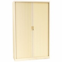 Skříň s roletou v různých barevných variantách. Výškově přestavitelné police. Cylindrický zámek, dva klíče.Kovové spisové skříně s roletou, 4 police, 195 x 120 x 45 cm