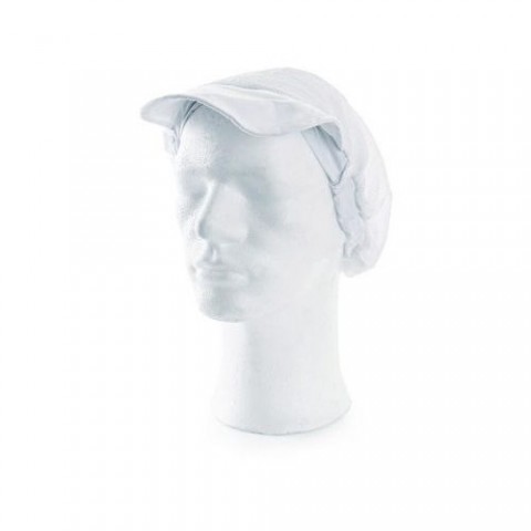 Kuchařská čepice s kšiltem, upevnění na gumu. Velikost: UNI Rozdělení: Dámské Piktogramy: bez CE Materiálové složení: kepr 100% bavlna 190g/m2 , plátno 100% bavlna, tyl 100% polester Gramáž: 190 g/m2 Barva: bíláKuchařská čepice NELA, bílá