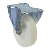 Transportní kola s bílou nylonovou obručí. Nízký valivý odpor. typ kol: pevná materiál kol: nylon průměr kola: 100 - 200 mm šířka kola: 35 - 50 mm nosnost: 150 - 200 kg způsob uchycení: vidlice s přírubou výška kola s vidlicí: 128 - 235 mm ložiska: valivá (jehličková) povrchová úprava pozinkováním, dvouřadý kuličkový věnec ve vidlicové hlavě, odolnost proti teplotě od -20 do +80°C, krátkodobá odolnost proti teplotě od -40 do +120 °C, odolná proti korozi, odolnost (oleje, tuky, chemické látky)Nylonová transportní kola s přírubou, průměr 100 - 200 mm, valivá ložiska