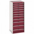 Plastové organizéry se zásuvkami řady VarioPlus Pro se vyznačují velmi robustním provedením. Vysoká stabilita díky přihrádkám z plastových profilů. Vysoká nosnost díky ocelovému obložení spodní části přihrádek. Zásuvky jsou zajištěny proti vypadnutí. Možnost čtyřbodové montáže na stěnu. Vhodné pro profesionální použití (např. pro skladování součástek a jiných dílů). Horní část organizéru vhodná např. pro odkládání nářadí. Dodáváno včetně děličů do zásuvek.Plastový organizér VarioPlus Pro 29/35, 17 zásuvek