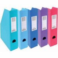Pořadače na časopisy jsou vyrobeny z desek potažených plastem, dodávají se v plochém stavu a snadno se sestavují. Obsah pořadače lze jasně identifikovat díky držáku na štítky, který obsahuje štítek s kartou a je připevněn na nejširší části. Otvor pro palec pro snadnou manipulaci.Plastový pořadač Exacompta, šířka hřbetu 70 mm