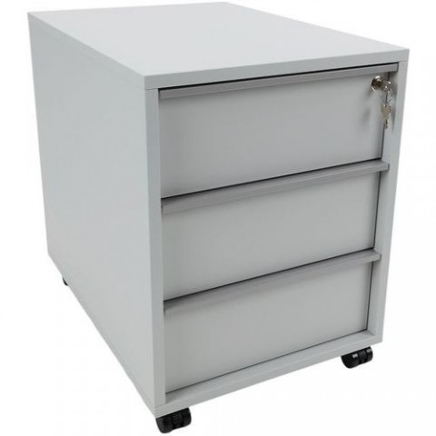 Mobilní zásuvkový kontejner Misao v šedém provedení s hliníkovými rukojeťmi. Výška zásuvky 8,6 cm a šířka 50 cm. Maximální zatížení každé zásuvky je 25 kg. Otočná kolečka o průměru 37 mm. Centrální zamykání zásuvek.Pojízdný zásuvkový kontejner Misao Manutan Expert, 56 x 42,8 x 60 cm, 3 zásuvky, šedá