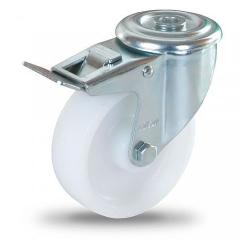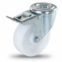 Polypropylenová pojezdová kola pro nízká a střední zatížení. Pozinkovaná vidlice. Dvouřadý kuličkový věnec ve vidlici. typ kol: otočná s brzdou materiál kol: polypropylen průměr kola: 80 - 125 mm šířka kola: 40 - 50 mm nosnost: 120 - 170 kg způsob uchycení: vidlice se středovým otvorem průměr středového otvoru: 12,3 mm výška kola s vidlicí: 108 - 150 mm vyložení kola: 38 - 41 mm ložiska: kluzná brzda otáčení, povrchová úprava pozinkováním, dvouřadý kuličkový věnec ve vidlicové hlavě, odolnost proti teplotě od -20 do +80 °CPolypropylenová transportní kola se středovým otvorem, průměr 80 - 125 mm, otočná, kluzná ložiska