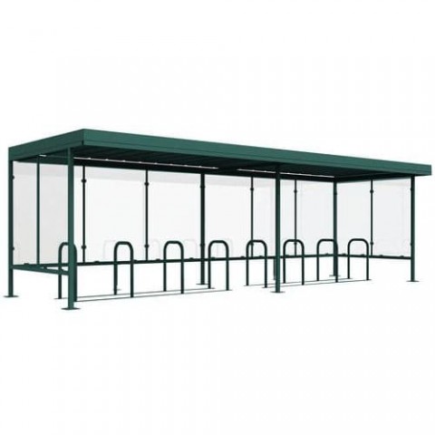 Prosklený přístřešek se stojanem na kola chrání kola před deštěm a nepříznivým počasím. Výplň tvoří bezpečnostní tvrzené sklo tl. 5 mm. Ocelová plechová střecha se zajištěným odtokem dešťové vody pomocí PE žlabů. Konstrukce vyrobená z pozinkovaných ocelových profilů 60 x 60 x 2 mm. Montážní šrouby z nerezové oceli třídy A2. Povrchová úprava termosetovou polyesterovou barvou vypálenou při 200 °C, která odolává UV záření. Čtyři nohy na platformě 200 x 200 x 5 mm, kterou lze připevnit k zemi. Pro připevnění k betonovému základu použijte kotevní šrouby M12/65, na čistý rovný asfalt použijte závitové tyče M12/120 (minimální tloušťka asfaltu 7 cm).Prosklené přístřešky Manutan Expert Beaulieau na kola, délka 7,6 m