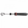 Otočná rukojeť pro snadný přístup do stísněných prostor. Směr otáčení se udržuje pomocí systému „palm control“. Účinná ráčna s úhlem návratu 6° (60 zubů). Bezpečnostní zámek zásuvky.1/4'' ráčna s otočnou rukojetí