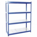 Robustní základní regály s pevnou kovovou konstrukcí a vysokou nosnotí. Výhodou regálů je snadná montáž bez šroubování. Vyztužené police jsou výškově stavitelné v rastru 62 cm. Stojiny kovových regálů dodávány s kovovou patkou. Možnost dokoupení dalších kovových polic a dřevotřískových desek pro uložení na police. Povrchová úpava práškovým lakem v modré barvě RAL 5015.Bezšroubové kovové regály Arawn