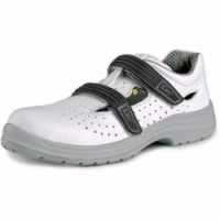 Sandál, perforovaný, s ocelovou špicí. Velikost: 36-48 Typ obuvi: Sandál Stupeň ochrany: S1 Normy: EN ISO 20345:2011 S1 SRA Materiálové složení: svršek z pratelného mikrovlákna, zapínání 2 pásky na suchý zip, podšívka kvalitní prodyšná textilie, PU-PU, olejivzdorná, antistatická, protiskluzová podešev Barva: bíláSandál s ocelovou špicí PINE S1, perforovaný, bílá