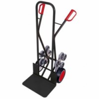 Schodišťový rudl s pětiramennými hvězdicovými koly s šedými nešpinivími pneumatikami z termoplastické pryže. Ocelová konstrukce s lopatou o rozměru 480 x 300 mm. Dvě plastová bezpečnostní madla. Pneumatiky na ocelovém ráfku nebo celopryžová kola na plastovém ráfku s přesnými kuličkovými ložisky a plastovým krytem kola.Schodišťové rudly RU249, do 200 kg
