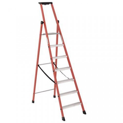 Profesionální ultra ploché sklolaminátové izolační schůdky Compact. Jsou vyrobené z kombinace skelných vláken a hliníku. Izolují od elektrických proudů nízkého a středního napětí. K dispozici se 3 až 7 schody a poskytují bezpečný přístup do výšek až 3,61 m. Žebrované protiskluzové 80 mm schůdky. Plošina 250 x 250 mm. Modely se 6 a 7 stupni mají dva popruhy. Hliníkové panty odolné proti zasekávání. Součástí je držák na nářadí a hák.Sklolaminátové schůdky Compact Tubesca-Comabi