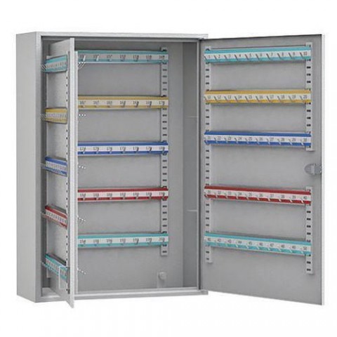 Ocelová klíčová schránka s elektronickým zámkem. Umístění lišt s háčky není fixní. materiál: ocelový plech dodáváno bez klíčenek způsob uchycení: pro upevnění na stěnu zámek: elektronický počet háčků: 200 barva: šedá rozměry: 550 x 380 x 145 mm umístění lišt s háčky lze měnitSkříňka na klíče s elektronickým zámkem, 200 háčků