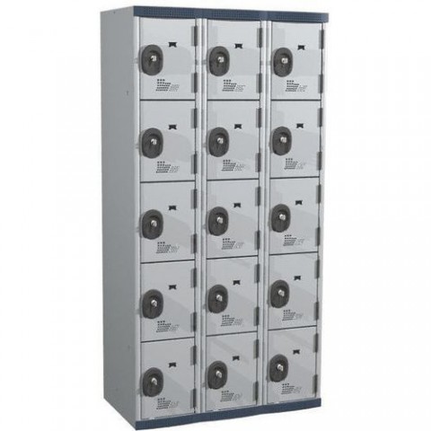 Svařované šatní skříně Acial, 3 sloupce, 15 boxů, 300 mm, cylindrický zámek