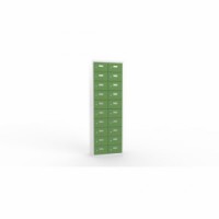 Skříně ze svařovaného plechu s malými schránkami na uložení osobních věcí. Vhodné do kantýny, posiloven, fitness center, bazenů nebo recepce hotelů. Jednotlivé schránky jsou samostatně uzamykatelné cylindrickým zámkem na klíč. Možnost vložení štítku se jménem nebo číslem na dvířka každé schránky.Svařované skříně na osobní věci Ron I, 20 boxů, cylindrický zámek