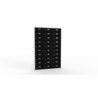 Skříně ze svařovaného plechu s malými schránkami na uložení osobních věcí. Vhodné do kantýny, posiloven, fitness center, bazenů nebo recepce hotelů. Jednotlivé schránky jsou samostatně uzamykatelné cylindrickým zámkem na klíč. Možnost vložení štítku se jménem nebo číslem na dvířka každé schránky.Svařované skříně na osobní věci Ron II, 30 boxů, cylindrický zámek