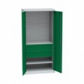 Úklidový vozík se dvěma plastovými kbelíky o objemu 15 l, dvěma plastovými kbelíky o objemu 6 l a pákovým ždímačem. Kbelíky jsou rozlišené barevnými uchy pro čistou a špinavou vodu. Kovová konstrukce se dvěma policemi pro uložení hygienického materiálu. Vybaven držákem na odpadkové pytle o objemu 120 l.Úklidový vozík Manutan Expert s pákovým ždímačem, 2 x 15 l + 2 x 6 l