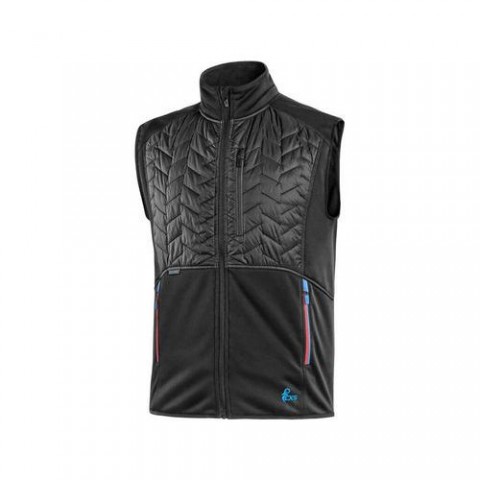 Pánská vesta z kombinovaných materiálů, vhodná do práce i pro volný čas. Vesta má zapínání na zip, spodní lem do gumičky, náprsní kapsu a boční zipové kapsy, reflexní doplňky a vnitřní náprsní kapsu na zip. Velikost: 2XL-XL Reflexní doplňky: AnoVesta CXS LEONIS, pánská, černá s HV modro/červenými doplňky