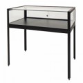 Produktové skleněné vitríny s dvoukřídlými uzamykatelnými dveřmi. Vitríny obsahují čtyři skleněné police. Vyrobené z ESG skla 4 mm a hliníku, umístěné na čtvercové podstavě. Vhodné použití jako vitríny do obchodů nebo jako výstavní vitríny.Skleněná produktová vitrína Hodor
