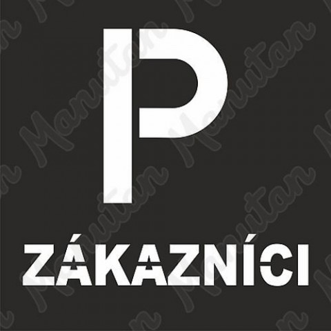 Značky, tabulky a samolepky "Šablona Parkoviště pro zákazníky" tiskneme na velmi kvalitním materiálu, barvami s vysokou odolností proti otěru a UV záření. Tak, aby provedení značení bylo plně v souladu s Nařízením vlády č. 375/2017 Sb., ČSN ISO 3864 a ČSN ISO 3864-1. Plastová šablona Parkoviště pro zákazníky - vodorovné značení Precizně, CNC vyřezaná plastová šablona pro nástřik piktogramu sprejem nebo nanášením válečkem. Značení pomocí šablony lze jednoduše, během několika minut vytvořit na zdech, chodnících, pakovištích nástřikem vhodným sprejem, odolným proti otěru. Šablona je opakovaně použitelná. Na objednávku Vám vytvoříme jakoukoli šablonu až do rozměru 1,6 x 3,4 m.Vodorovné značení - Šablona parkoviště pro zákazníky
