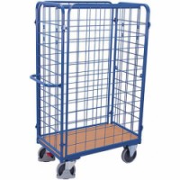 Vysoké policové vozíky s jednou spodní policí vhodné do skladů pro přepravu materiálu a zboží. Police je vyrobená z MDF desky. Vozíky jsou opatřené mřížovými bočnicemi s oky velikosti 12 x 12 cm. Pohyb zajišťují čtyři kola s valivými kuličkovými ložisky, z nichž dvě jsou pevná a dvě otočná s brzdou Easy Stop a ochrannými kryty. Možnost vložení dalších polic stavitelných v rastru 12 cm.Vysoké policové vozíky se 4 mřížovými bočnicemi, do 400 - 500 kg, 1 police