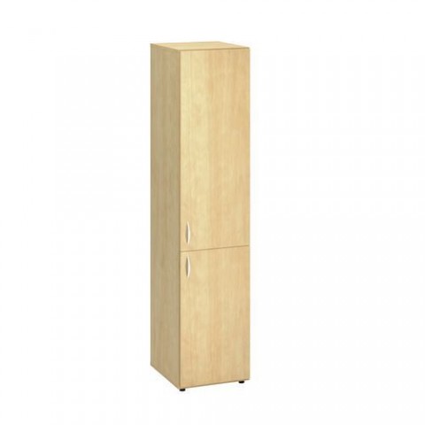Vysoké kancelářské skříňky se dvěma dvířky ve čtyřech barevných provedeních. Skříň je rozdělena do dvou oddílů a obsahuje celkem 4 police. Korpusy jsou vyrobeny z laminované dřevotřísky tloušťky 18 mm s ABS hranou 1 mm. Záda skříní tvoří laminovaná dřevotříska o tloušťce 8 mm. Dřevěné police jsou upevněny kovovými trny, které zamezují jejich nežádoucímu vysunutí. Kancelářské skříně jsou vysoce odolné proti mechanickému poškození a disponují zvýšenou odolností vůči nadměrné vlhkosti. Pomocí aretačních šroubů umístěných ve dně korpusu lze vyrovnat nerovnosti podlahy a zajistit tak vyšší stabilitu skříňky. Skříně splňují normy ISO 9001, ISO 14001, ČSN 18001, Ekologicky šetrný výrobek.Vysoké úzké skříně Alfa 500, 178 x 40 x 47 cm, s dvířky - pravé provedení