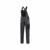 Dámské montérkové kalhoty s náprsenkou, z lehkého materiálu, náprsní kapsa s klopou, přední klínové kapsy, boční kapsa s klopou, kapsa na skládací/svinovací metr, zadní jednoduchá kapsa, šle vzadu na gumu. Díky odlehčené gramáži vhodné pro práci neje Velikost: 36-58 Svrchní materiál: 65 % polyester 35 % bavlnaZahradníky CXS PHOENIX HEKATE, dámské, šedo-černé