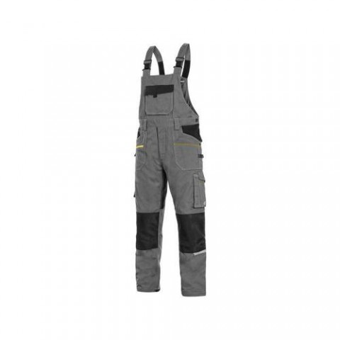 Pánské montérkové kalhoty s náprsenkou - zkrácená varianta na výšku 170-176 cm. Strečová tkanina umožňující volný pohyb, náprsní kapsa s klopou, pas s poutky na opasek, přední kapsy s kapsou na zip, multifunkční kapsy na obou stranách, kolena zesílena 600D polyesterem s možností vložení kolenních výztuh, dvě zadní kapsy - jedna s klopou, zadní spodní lem nohavice vyztužen 600D polyesterem, šle s gumou vzadu, reflexní doplňky. Doporučené použití: strojírenství, stavebnictví, lehký průmysl, automobilový průmysl, logistika, skladová manipulace, spedice, autoservisy, údržba, montáže, zemědělství, zahrada, hobby. Velikost: 44-64 Svrchní materiál: 98 % bavlna 2 % elastan Reflexní doplňky: Ano OEKO-TEX® STANDARD 100: AnoZahradníky CXS STRETCH, 170-176cm, pánská, šedo - černé