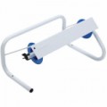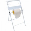 Skládací stojan na průmyslové utěrky. Opatřen nastavitelným ozubeným nožem (44,5 x 9,7 cm) pro snadné odtrhávání. Nosná tyč je opatřená žlutými plastovými kužely pro stabilitu role. Držák je vhodný pro role s maximálním průměrem 35 cm. Ošetřeno práškovou bílou barvou.Stojan na průmyslové utěrky Manutan Expert
