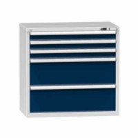 Zásuvková skříň je opatřená mechanismem centrálního zamykání a blokace zásuvek. Zásuvky jsou základním skladovacím prvkem, a proto splňují vysoké požadavky na pevnost a stabilitu. Korpusy zásuvkových skříní tvoří svařenec jednotlivých konstrukčních dílů z kvalitních ocelových plechů. Vnitřní konstrukce korpusů je opatřena perforací po 25 mm. Tuto perforaci využíváme k uchycení vodicích lišt zásuvek, jejich výškovému uspořádání a nakonfigurování požadované zásuvkové sestavy. Přestavování vodicích lišt nebo háčků polic probíhá jednoduše a velice rychle bez použití nástrojů.Zásuvkové skříně ZC3, 1037 x 600 x 990 mm