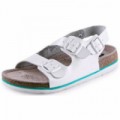 Dámské zdravotní sandály s anatomicky tvarovanou stélkou. Se dvěma nastavitelnými pásky a rovnou podešví.Zdravotní kožené sandály CXS Dr. Cork, dámské, bílé